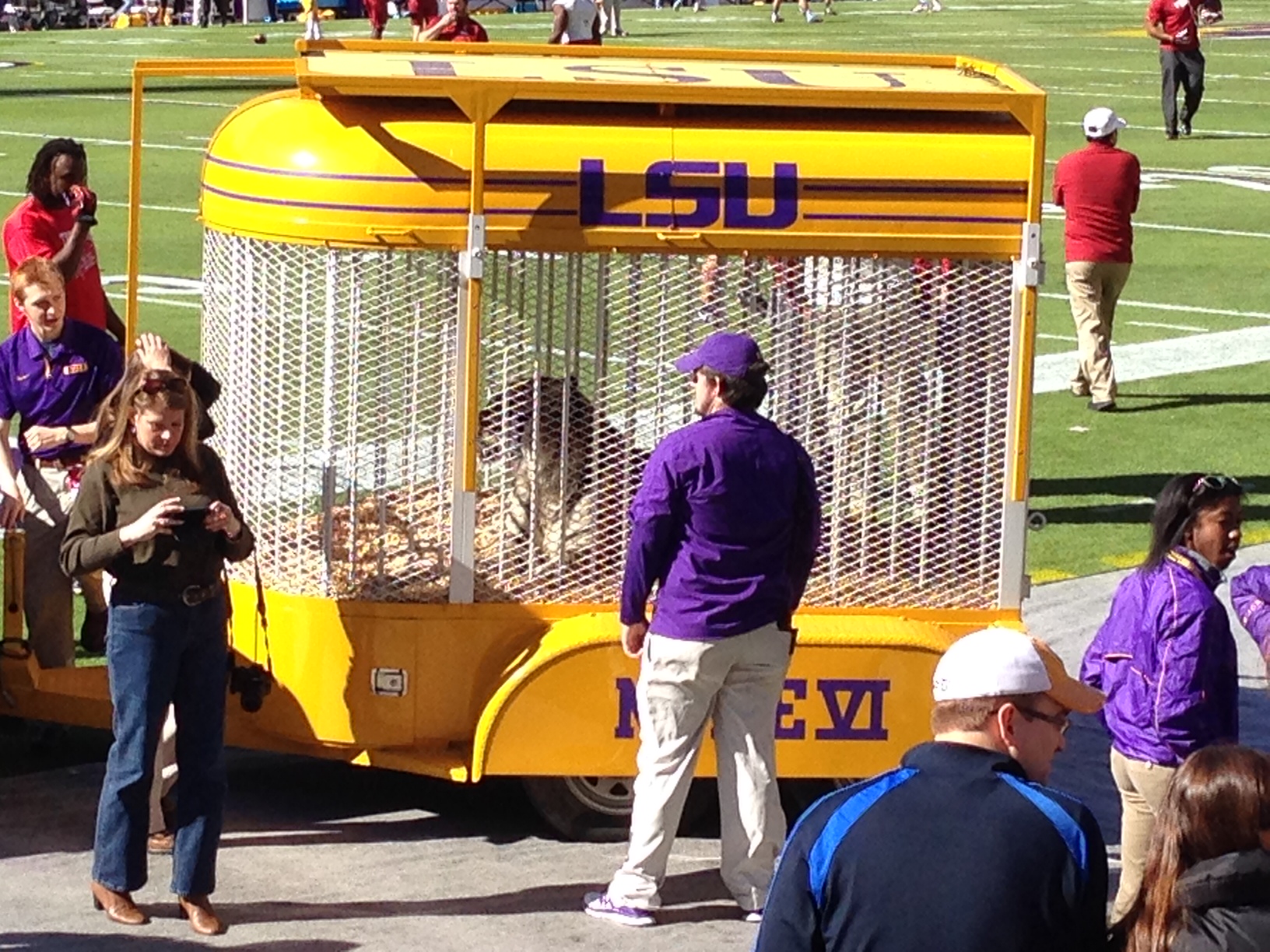 Now, as far as this game goes, the Hogs were firing on all cylinders. The biggest thing I saw in this game that I hadn’t seen in a while was how strong they went into the half. In the last few games, they had been close but had given up a score right before the break. In this game, Zach Hocker kicked a FG to put Arkansas up 17-14 as the second quarter expired. Kiero Small ran for a TD in the first quarter and Brandon Allen hit Hunter Henry for a 9-yard TD in the 2nd. Hocker also kicked a FG in the third and Henry caught another TD. Sadly, both of Hocker’s FGs were 20 and 28 yards. Brandon Allen threw a costly INT in the end zone after Korliss Marshall set up the Hogs in LSU territory with a 32-yard rush. Arkansas would cause a fumble and get to the LSU 3, but ended up kicking a FG. Going into the 4th quarter, Arkansas was up 27-21. That score held for 10 minutes before LSU had to kick a FG after QB Zach Mettenberger got hurt. When I saw the way he got up, I wanted to cry. I was almost positive he had torn his ACL (which was later confirmed). I hated to see that happen, especially to a senior. And, yes, I am an Arkansas fan, and it might sound strange that I was sad that the star QB for LSU got hurt. But I also know how a team and fans respond when a star goes down with the game on the line. The crowd finally got deafening with about 5 minutes to go in the game and I had a sinking feeling that there was no way LSU was going to lose. And, unfortunately, that feeling was right. Even after pinning the Tigers on their own 1, LSU had plays of 16, 11 and then backup QB Anthony Jennings broke a 21-yard run to the Arkansas 49 yard line. 1st and 10: incomplete pass. 2nd and 10: completed pass for no gain. Timeout LSU with 1:22 on the clock and the Arkansas fans are as loud as they’ve been the whole game. 3rd and 10 from the Arkansas 49: 49-yard TD pass from Anthony Jennings to Travin Dural… and the crowd goes wild. Arkansas would fumble on their next possession, securing the win for the 17th ranked Tigers and a 0-8 SEC season for the Hogs. Almost every Razorback fan stayed as the team left the field. We sang the fight song and alma mater and let the team know how proud we were. The long drive was worth it, and I would have sat in a car for 11 more hours to see that game.